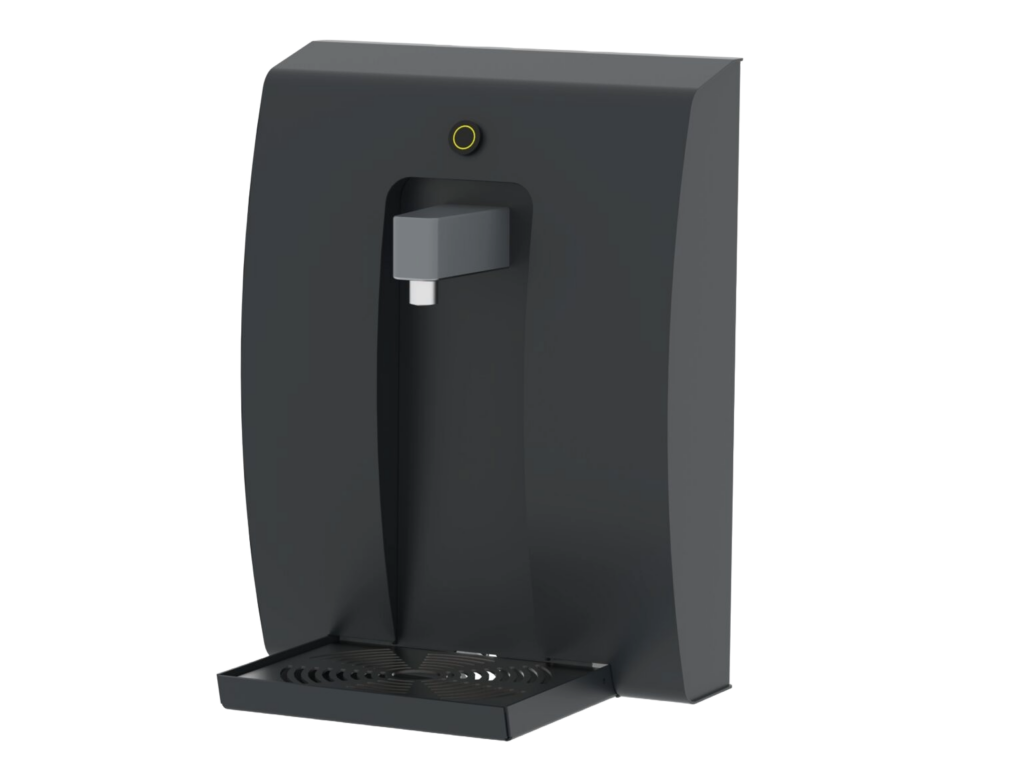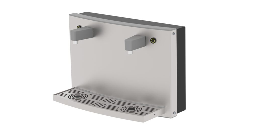En samlet, robust tappestation i rustfrit kabinet med to samtidige taphaner. Tappehastighed: ½ liter koldt vand pr. hane på under 12 sekunder. Kølekapacitet: 1.600 W (ca. 120–150 l/t). Stor spildbakke koblet til afløb. Ideel som centralt tappunkt, der minimerer kø og sparer tid i skoler, kantiner og idrætshaller. Vedligeholdelsesfri med 4 års omkostningsgaranti (dækker hvis den går i stykker).