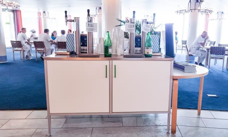 En samlet, robust tappestation i rustfrit kabinet med to samtidige taphaner. Tappehastighed: ½ liter koldt vand pr. hane på under 12 sekunder. Kølekapacitet: 1.600 W (ca. 120–150 l/t). Stor spildbakke koblet til afløb. Ideel som centralt tappunkt, der minimerer kø og sparer tid i skoler, kantiner og idrætshaller. Vedligeholdelsesfri med 4 års omkostningsgaranti (dækker hvis den går i stykker).