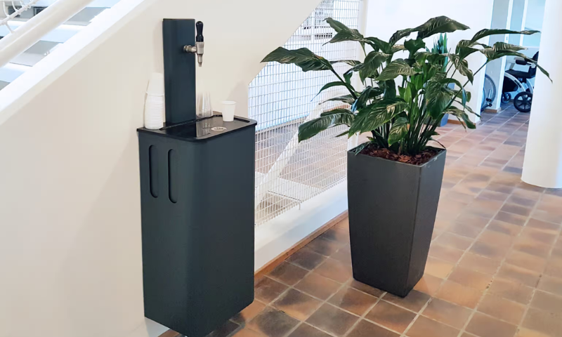 - Lille vandkøler perfekt til kontormiljøer, frokoststuer, venteværelser, SFO’er, lærerværelser eller fitnesscentre